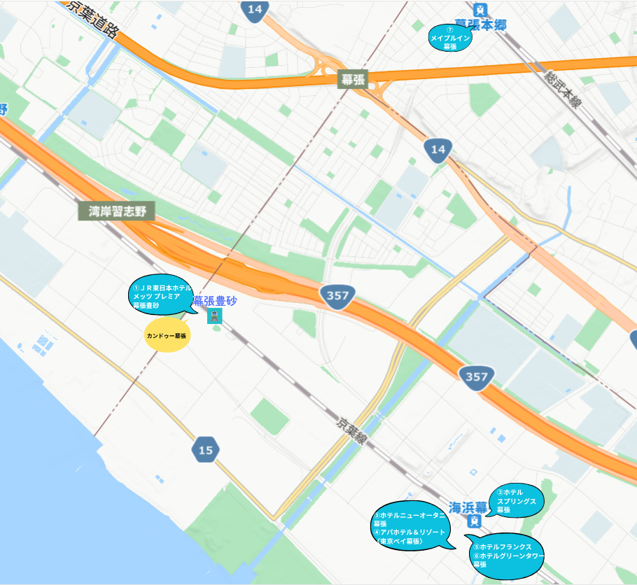 - 幕張豊砂駅周辺で泊まれるホテルは限られている